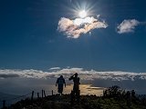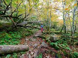 | ◆近畿にある3つの百名山を登る2泊3日の遠征に行ってきた。一日目は奈良県吉野郡の大台ヶ原 日出ヶ岳へ(写真1〜5)。この山の目玉は大蛇ぐら(写真1,2)と呼ばれる大台ヶ原の端にある断崖絶壁で、1000mもの標高差があり大蛇の背中のような岩場の端に手摺りが設けられていて満点のスリルを楽しめる絶景の場所。◆近畿遠征2日目は奈良県吉野郡の八経ヶ岳へ(写真6〜11)。この八経ヶ岳の登山道の一部は、世界遺産 大峰奥駆道(吉野と熊野の二大霊地を結ぶ約98kmに及ぶ修験者の山岳道)になっている。嬉しいことに修験者の一行とすれ違い、少しばかり話も聞けて写真撮影にも快く応じてくれた。◆修験者の山岳道であるこの世界遺産 大峰奥駆道の森は、他の名山とはどこか違う何とも言えない趣があった。世界遺産という意識がそうさせているのかもしれない。この日は雨が降ったり止んだりと生憎の天気だったが色付き始めた紅葉に元気づけられた。◆近畿遠征3日目は滋賀県米原市の伊吹山へ(写真12〜14)。琵琶湖の東に位置し伊吹山ドライブウェイで9合目まで車で行けて駐車場から山頂まで30分も掛からない日本百名山だ。(現在、麓からの登山道は崩落で立入禁止)◆伊吹山山頂から見下ろす琵琶湖を西日が照らし感動的なシーンで近畿遠征3日間を締めくくった。 |